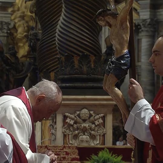 Nearly 30 years ago, I was living in Rome, and the city will always remain rooted in my heart. Thanks to the Vatican News YouTube channel, I can see and hear the Good Friday liturgy “at Saint Peter’s Basilica.” Although it began a bit early in the day in the USA, the live-stream enriched the whole rest of the day.