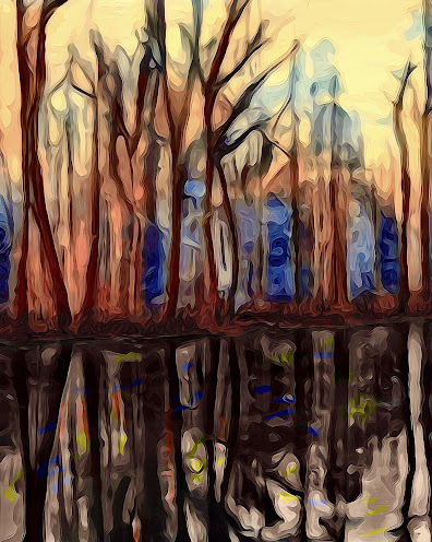 I have tried many versions of this digital painting, but I can’t reproduce the color. I’m not sure it’s possible to capture the process of changing hues, glowing light and shadows, reflection and movement on that water.