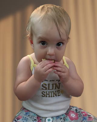 That includes growing physically. Maria is a giant compared to last year at this time. Now that she’s been on solid foods for a while, she’s a champion eater. Still, I was surprised to see her chowing down on crackers the other day. But she’s an expert with crackers, along with a wide spectrum of other solid foods now. We still have to stay with her, otherwise she might try to stuff multiple crackers in her mouth at the same time.