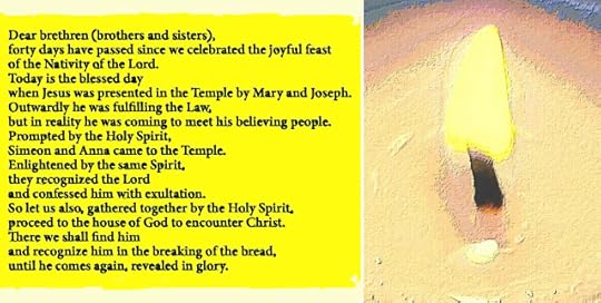 Since Jesus is the "light of revelation," today is also a special day for the blessing of candles, "Candlemas." One month from today, we begin the liturgical season of Lent, in penance and preparation for the observance of that Holy Friday when Jesus takes our sins upon Himself... and the Resurrection of Easter Sunday.