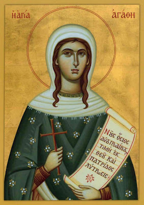 Centuries of devotion to Saint Agatha of Catania attribute these words to the heroic fourth century virgin and martyr. Catania on the coast of Sicily was long part of the Greco-Byzantine world; thus Saint Agatha is much loved to this very day by the Eastern churches. She is also one of the martyrs mentioned in the Roman Canon (the ancient Eucharistic Prayer of the Roman Rite).