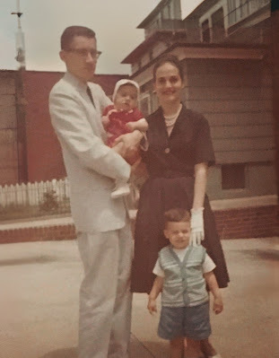 I miss my Mom on Mother's Day. This picture is from Spring 1963, with baby me and big brother Walter. Our Mom is 24 years old in this picture (younger than two of my own daughters today). Dad is 28 (my son turns 28 next month). This is the fourth Mother's Day since Mom passed away. I often miss her, yet she seems "not far from us." I pray for her and my Dad, that God will receive them into His embrace of Infinite Love forever. This is the fulfillment for which they were created.
