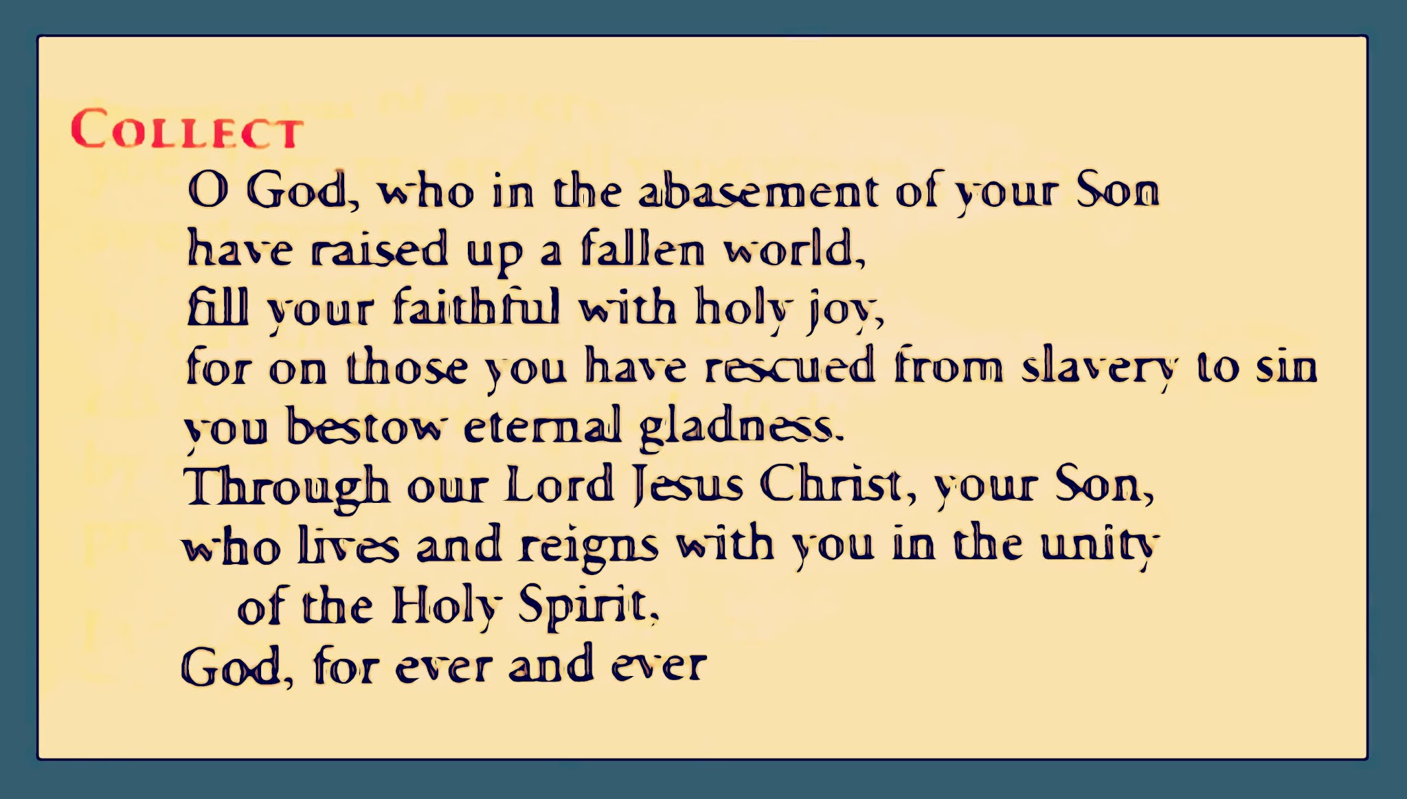 "Jesus said: Go out and tell the good news to everyone. Go out and in my name embrace life as it is, and not as you think it should be. Go out to the highways and byways, go out to tell the good news fearlessly, without prejudice, without superiority, without condescension, to all those who have lost the joy of living. Go out to proclaim the merciful embrace of the Father. Go out to those who are burdened by pain and failure, who feel that their lives are empty, and proclaim the folly of a loving Father who wants to anoint them with the oil of hope, the oil of salvation. Go out to proclaim the good news that error, deceitful illusions and falsehoods do not have the last word in a person’s life. Go out with the ointment which soothes wounds and heals hearts.