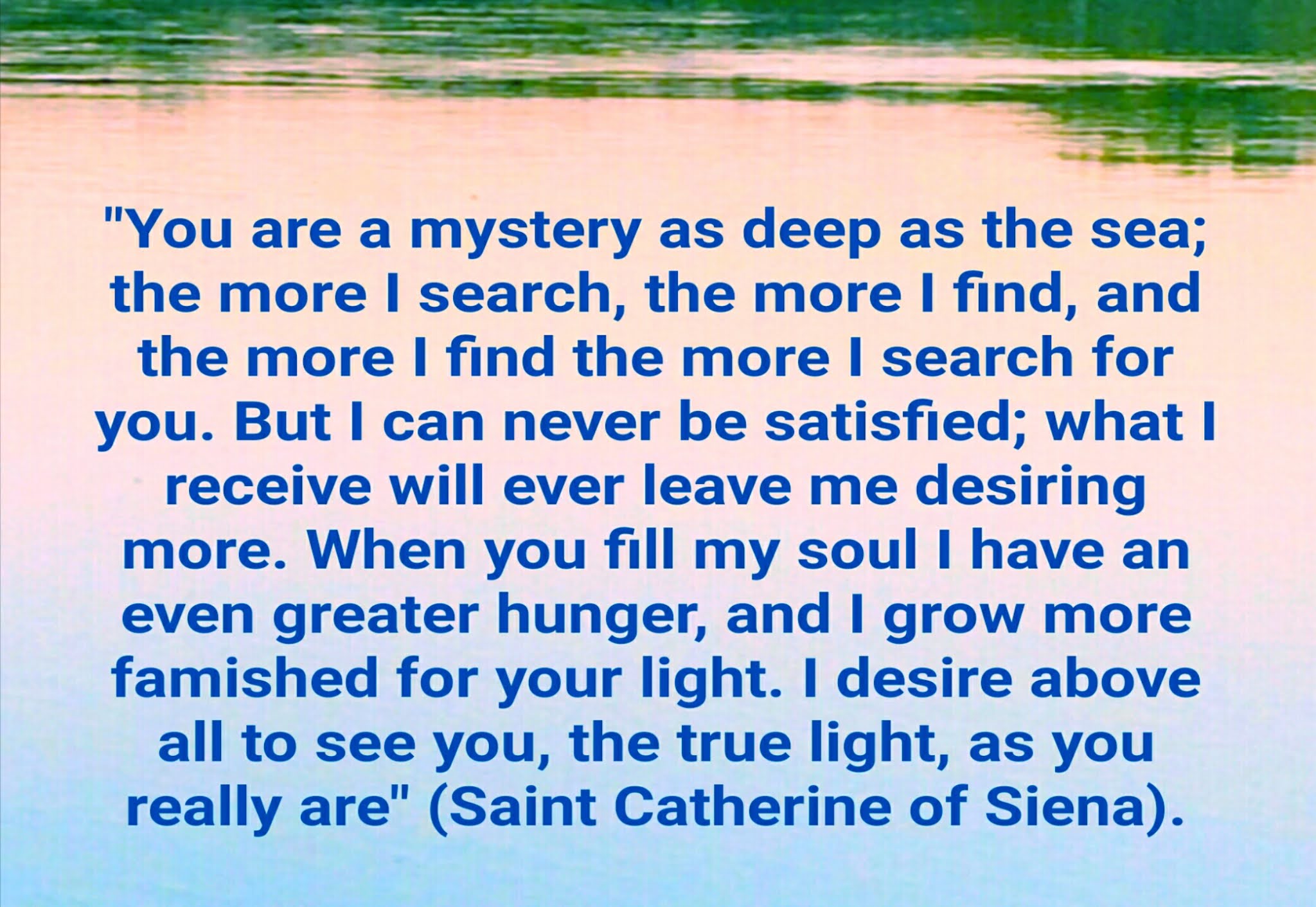 Catherine knew that the drama of human existence, the boundless desire of the human heart, can only find fulfillment in the embrace of the Mystery who is Infinite Love, who is revealed to us in the heart of Jesus.