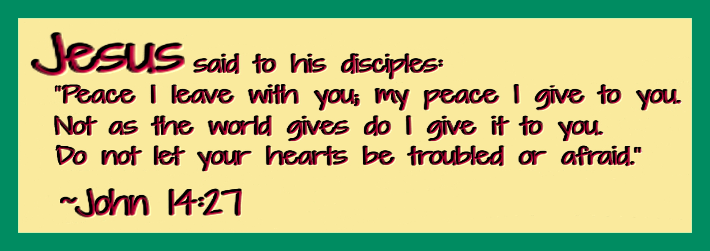 Jesus said to his disciples: “Peace I leave with you; my peace I give to you. Not as the world gives do I give it to you. Do not let your hearts be troubled or afraid" (John 14:27).