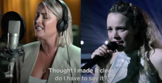 There was, in fact, quite a bit of good music. And the climactic song was, as I said, a little piece of cinema magic. The songwriters (Savan Kotecha, Max Grahn, and Rickard Gorensson) are the primary nominees for the award, but a lot of factors make this song work. Rachel McAdams acts very well the part of the fictional (comically spoofy but also endearing) Icelandic singer Sigrit, especially at this peak moment. She also "gives a lesson" in lip-synching.