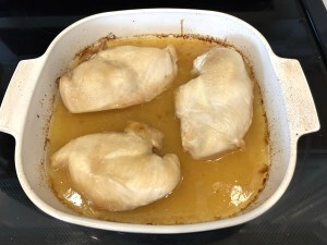 If you don’t wish to make another dessert with the leftover sauce, consider pouring it over three boneless chicken breasts in a greased baking dish and baking in the oven at 350 degrees for one hour. Slice and serve. Serves 4-6.