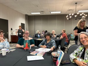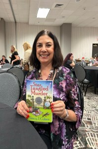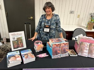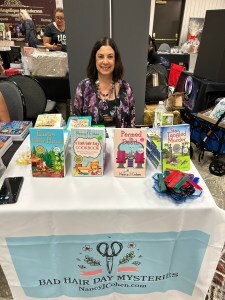 Overall, book sales for me were disappointing. I sold only 4 books, swapped books with 2 other cozy authors, and gave one away for the raffle. But… I met a lot of people, gave out postcards to readers, and attended some powerhouse workshops. I’d say the majority of writers did contemporary, paranormal or urban fantasy romance. Someone said paranormal romance is swinging toward fantasy. A smattering of cozy authors represented the genre.