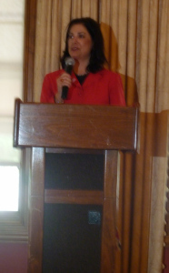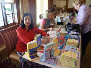 I enjoyed meeting the ladies from the library group, nearly ninety people. We ate a delicious lunch and then I gave my talk. This consisted of an overview of my Bad Hair Day mystery series, the life of working writer, and the state of publishing today. After quoting some statistics about the rise of ebooks and the decline of mass market paperbacks, I discussed the effects of the digital revolution on booksellers, librarians, readers, and authors. Following my speech, I signed books and thanked the organizers for inviting me.