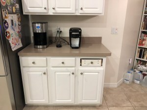 These additions extended the countertops so we would have more space for entertaining. We leveled off the counters, getting rid of the height differential and adding inches more to our counter space toward the family room.