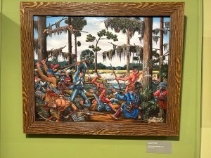 We parked and first went in the art museum. This consisted of several small rooms with a couple of artist’s works on display. I liked the colorful acrylics on wood.