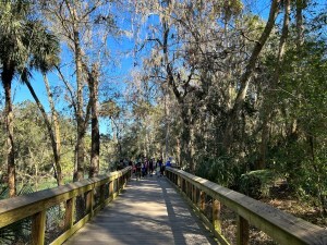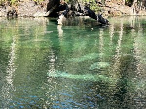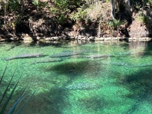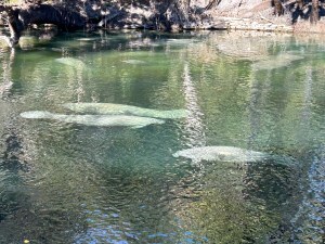 We finally got in after a long wait, parked, and strode past the playground to the boardwalk where you can see the manatees. The large creatures glided past in the water, which was surrounded by woods. They were fascinating to watch. It’s a peaceful setting where you can picnic, hike, or just relax.