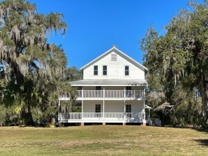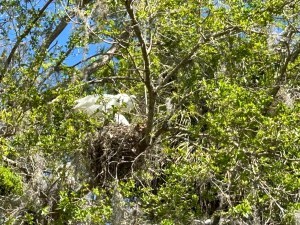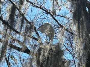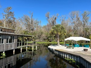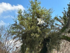The 5.22 acres are shaded by tall cypress trees where white great egrets flock in the branches.