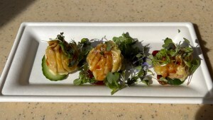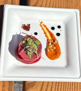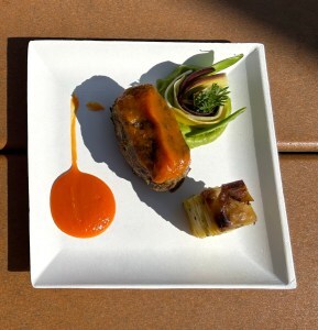 On a second visit, our friend Ann Meier had the Napoleon with Beets, Cashew-Herb Filling, Pepper-Pine Nut Sauce, and Balsamic Vinegar Caviar from the France pavilion.
