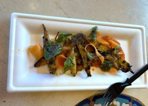 Three-Meat Meatloaf with “Peas and Carrots” came with Green Pea Pudding, Carrot Ketchup, Shaved Carrot salad, and Snap Peas. This was a dish that appealed to my husband. He said it was “average,” meaning it wasn’t anything special to his palate. Same location as above.