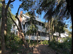My attention was drawn to the historical house built in the late 1880s. We noticed how it had an inviting screened porch on stilts in back.