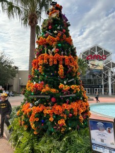 We were happy to dine at Disney Springs with our children for our 46th anniversary a couple of weekends ago. It has become our tradition to visit here during the December holidays. When the kids were younger, we would go to a movie on Christmas Day at the dine-in theater for lunch, and then afterwards we’d stroll through the park festive with shops, holiday decorations, and tourists.