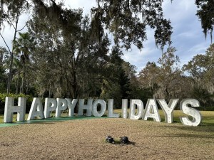 We visited Harry P. Leu Gardens during their Dazzling Nights display, although we went during the daytime. I love to walk these grounds that remind me of a rainforest. The shady paths wind past trickling brooks and pass by a nearby lake.