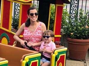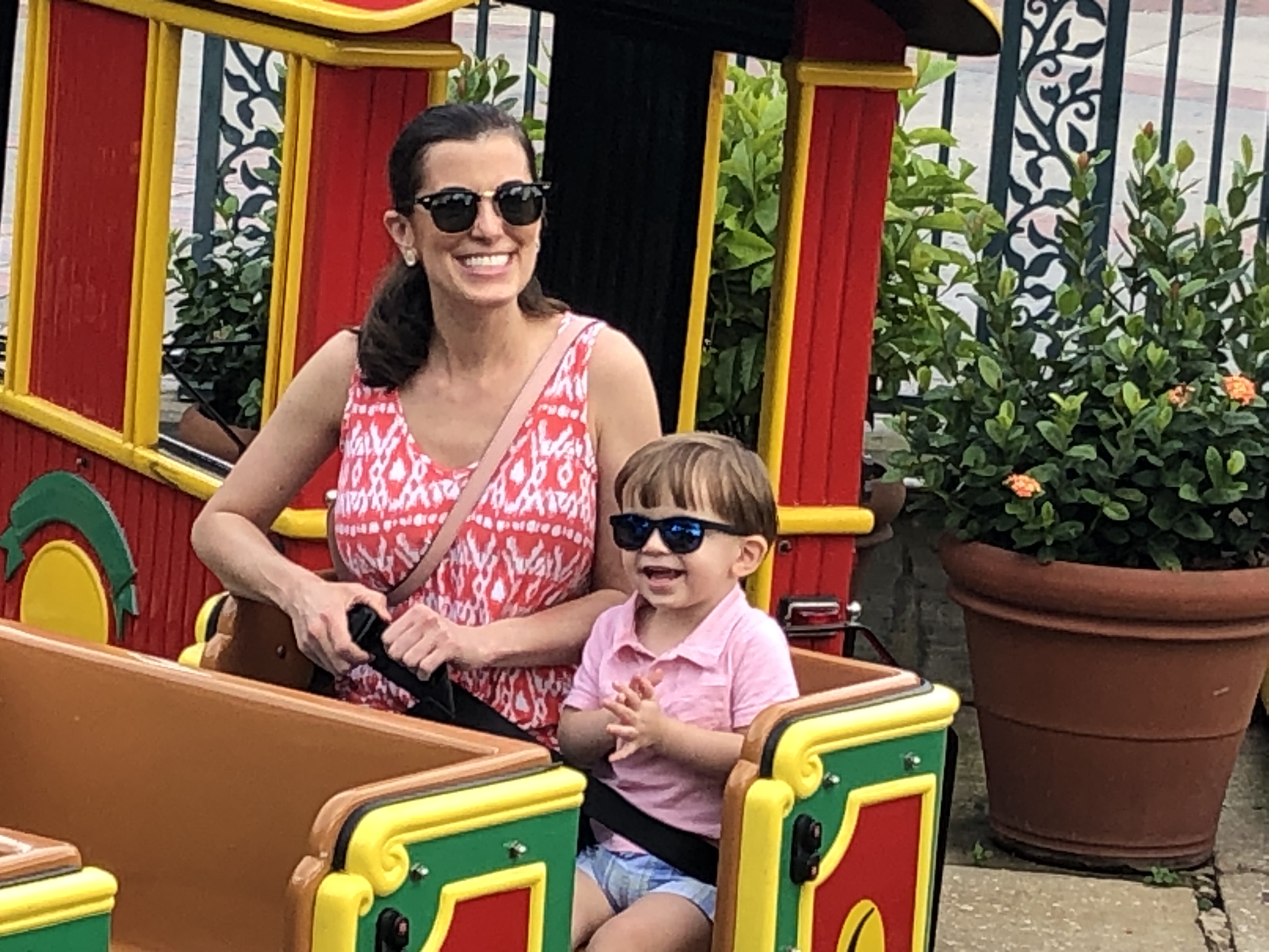 We passed a concert by a band and watched our grandson on a train ride with his mom. Not sure which one of them loved it more.