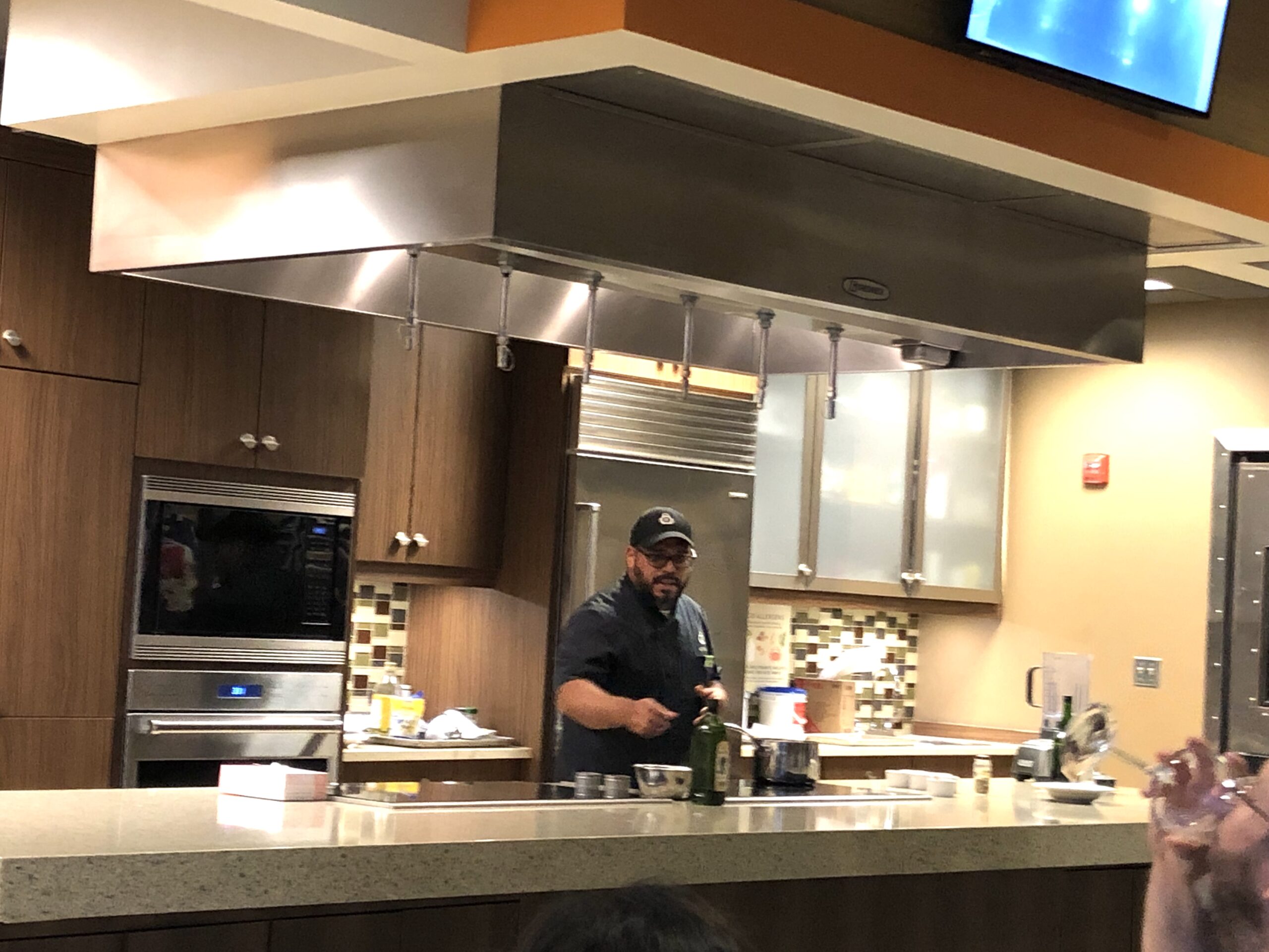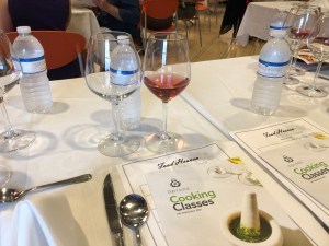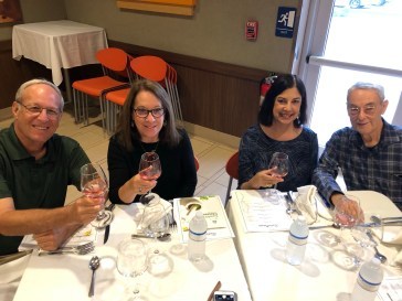 Publix Aprons Cooking School classes are always enjoyable. You can choose from demonstration or hands-on models. I prefer the chef demos because then we can sit at white-clothed tables, sip wine, and watch the chefs do all the work. We get to taste the food, which equates to a gourmet meal, sample different wines, and take the recipes home. Plus, these classes are reasonably priced for what you’d find elsewhere. Here we are with our machatonim, Es and Rick Cohen. (See Machatonim – The Jewish Chronicle (thejc.com) for a definition)