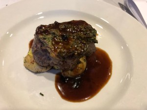 Dijon and Herb Crusted Beef Tenderloin with Roasted Shallow Jus and Smashed Potatoes – Very tender and deliciously prepared piece of beef worth the price of admission alone. I liked the Michael David Lust Zinfandel that accompanied this dish. It was dry with a moderate body and legs, in wine terms.