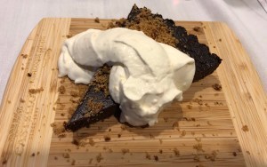 Bittersweet Chocolate Tart with Pretzel Crust and Mandarin Orange Whipped Cream – This chocolate dessert melted in one’s mouth. It was divine. I also enjoyed the Lola Pinot Noir although by then I’d had enough food and drink that I might have liked anything. This tart was the perfect dish to finish a delightful evening.