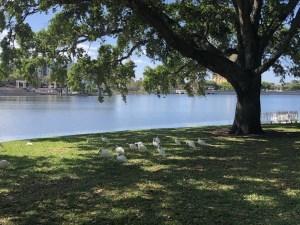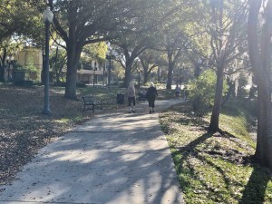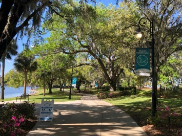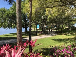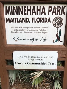 Recently we visited a trio of parks all within walking distance of each other in Maitland, Florida. Our excursion began at Minnehaha Park. This seven and a half acre facility overlooks a lake with a scenic boardwalk through a wetland forest. A playground, exercise stations and picnic tables dot the open landscape. Restrooms are available.