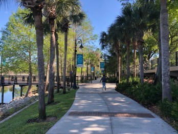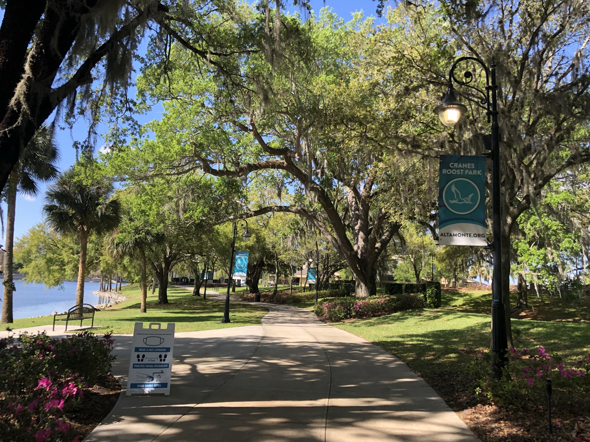 This past weekend, we went for a stroll around the lake at Cranes Roost Park located in Altamonte Springs, FL. This one-mile paved walkway is shaded by large trees while the boardwalks are mostly in the sun. Numerous benches provide seating to people watch or gaze at the lake. This 45-acre park also has an amphitheater and a plaza with a water fountain.