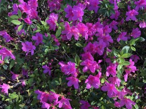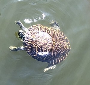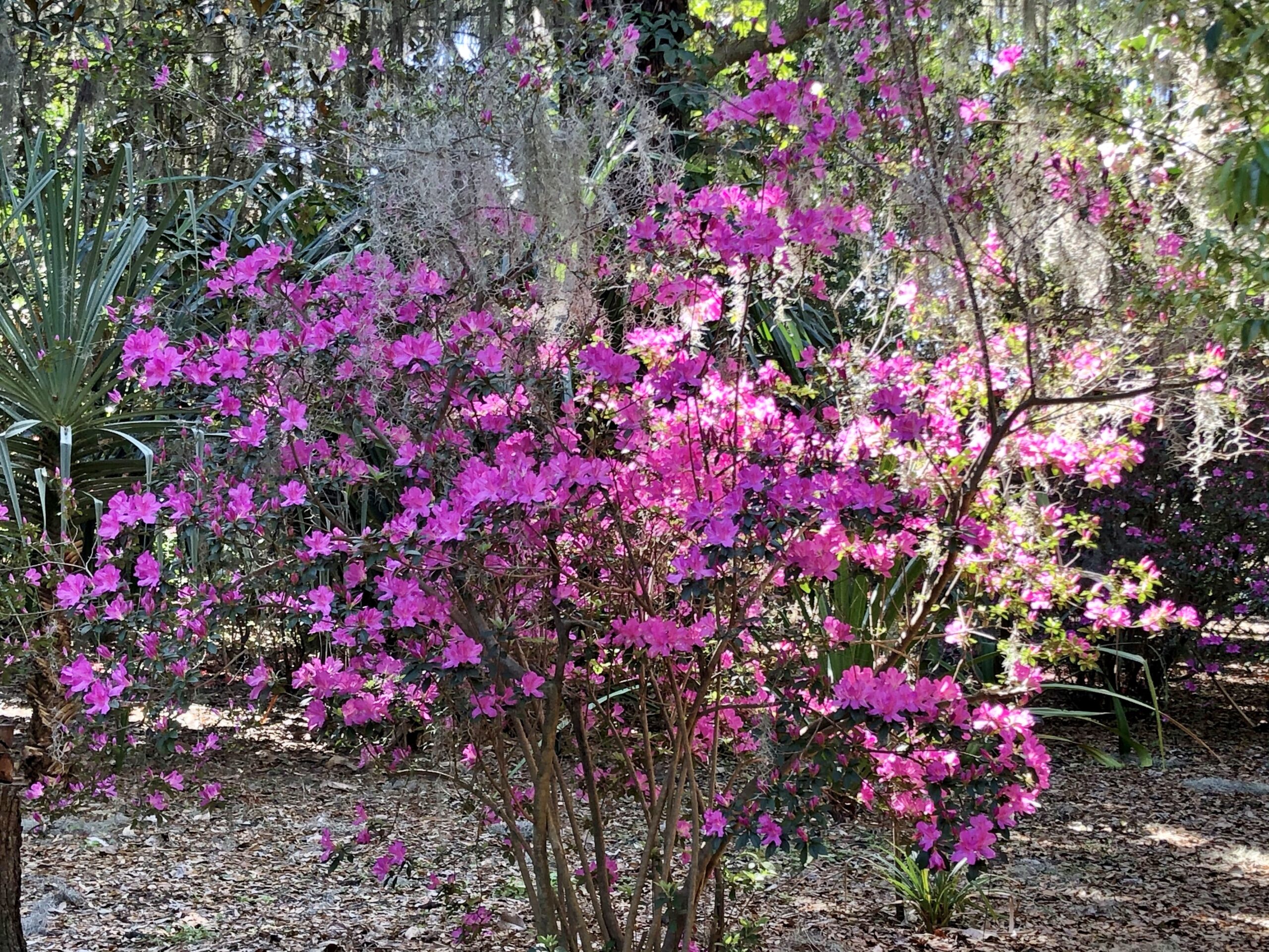 We spotted turtles, ducks and birds as we meandered along. The azaleas were in bloom, adding bright splashes of color against the green landscape.