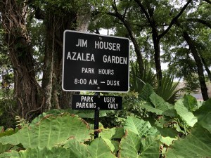Here is the view from the Covered Bridge side looking back at the other park. This park doesn’t have much except a walking path in a viewable loop and the bridge. But if you cross this bridge, you come to the Jim Houser Azalea Garden.