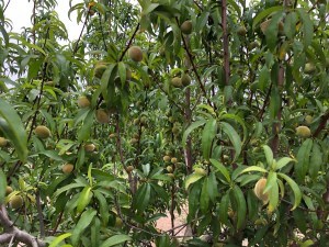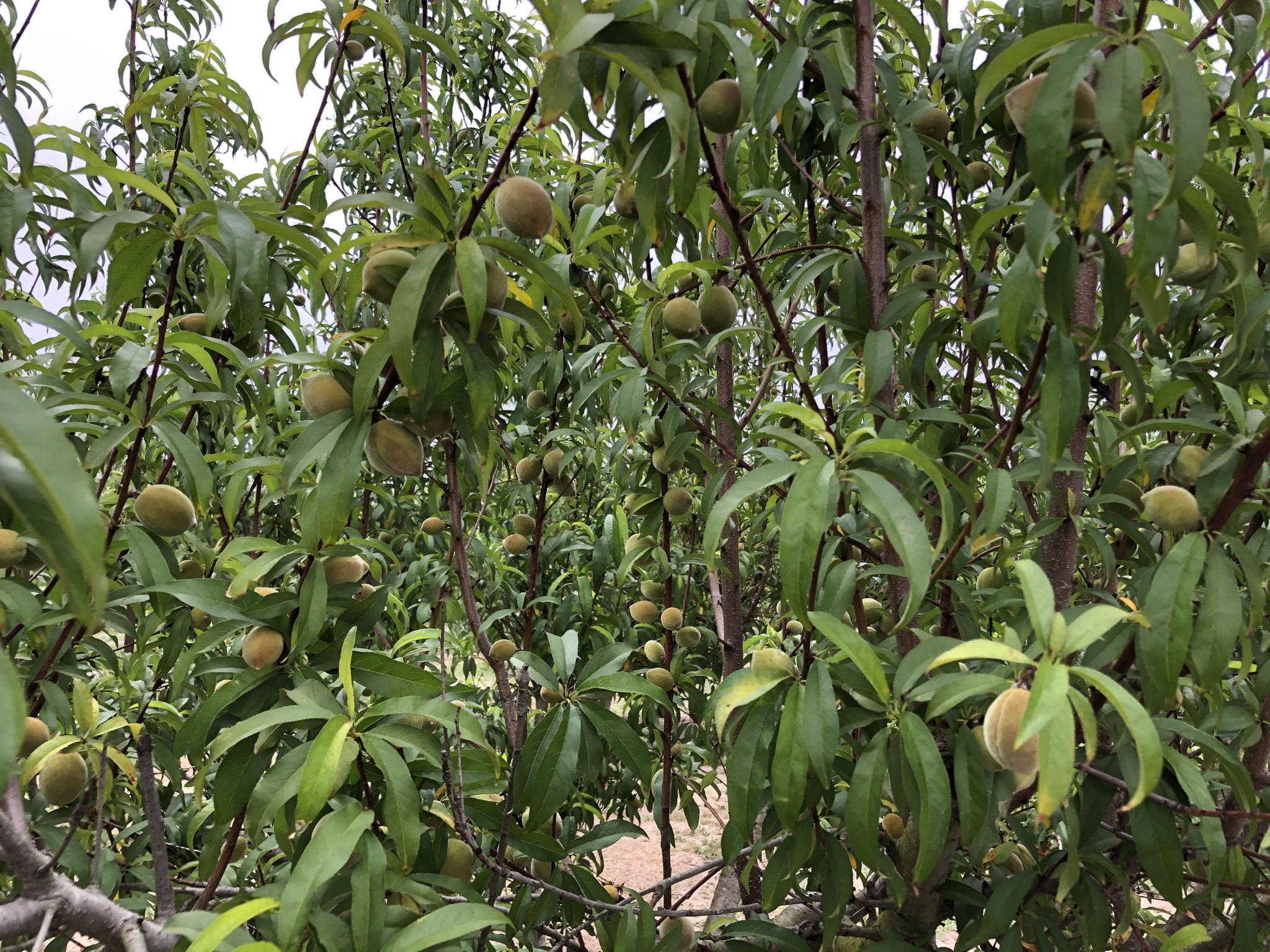 If it’s your first visit, you’ll be surprised by the crowd. There’s lots to do beside picking strawberries, blueberries or sunflowers. We saw these peach trees near the entrance.
