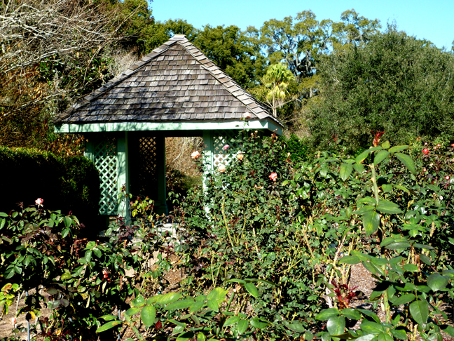 The wedding would take place in the gazebo by the Rose Garden. Should she go left or right? She couldn’t remember if the wedding site was by the Floral Clock or the House Museum. Listening to birds twittering in the branches, she discerned voices coming closer.