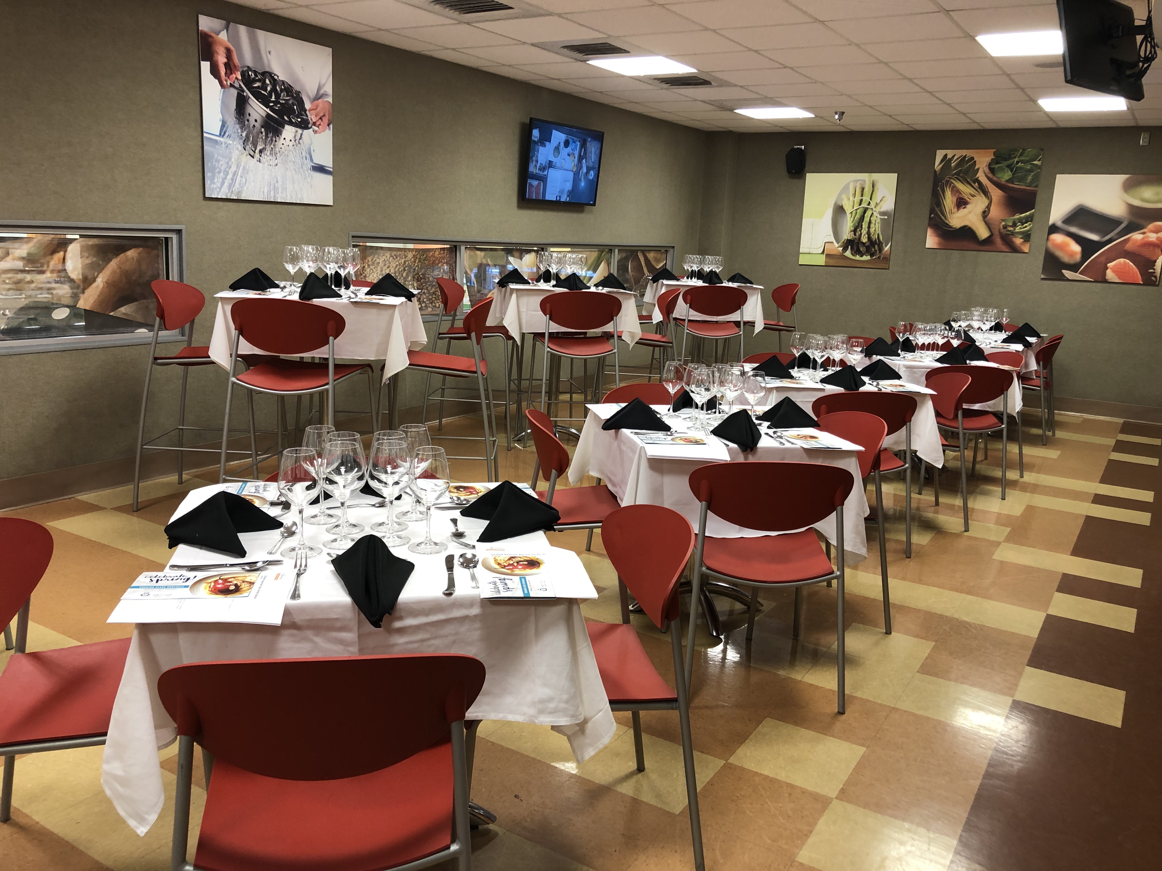 We attended a Publix Aprons Cooking School class last evening featuring guest executive chef Timon Ballo from the Sugarcane Raw Bar and Grill with locations in Miami, Las Vegas, and Brooklyn. This popular restaurant features globally-inspired small plates and Spanish-style tapas. The evening’s cooking class was fully booked. We were greeted with a glass of black cherry sangria.