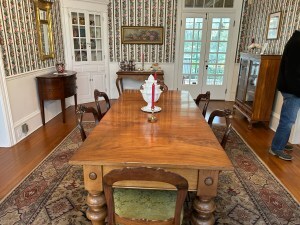The original owners were the Mizell family who claimed the land in 1858. There they grew sugar cane, cotton and corn. David Mizell was the sheriff of Orange County. He got killed in an ambush in 1870. Duncan Pell, the next owner, hired David’s son to add two more wings to the house. He made this a weekend getaway for him and his second wife, silent screen star Helen Gardner.