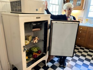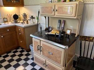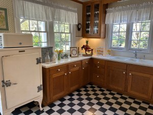 The kitchen has been modernized in some ways but still has a wood-burning stove and an old-fashioned refrigeration unit. Originally, it was a warming room while the food was cooking in an outbuilding accessible from a breezeway. But then the kitchen moved indoors.
