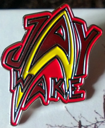The JayWake pin designed by Howard Tayler and gifted by Minerva Zimmerman.