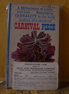 Here is William Lindsay Gresham's life insurance ID card, and his copy of a particularly apt title by Ed Wood, Jr. (Kathleen Everitt was Ed's wife's name.) His books: Nightmare Alley and Monster Midway, fiction and nonfiction respectively.