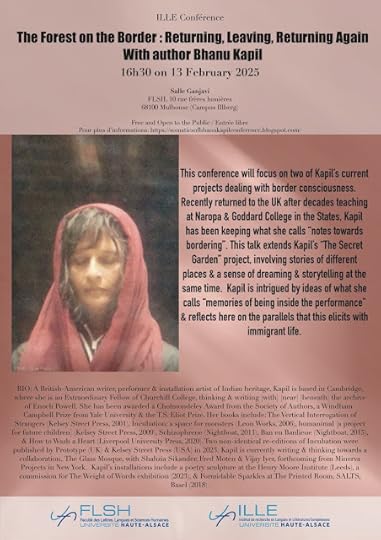 I will also be hosting a one day journée d'étude on and in the presence of Bhanu Kapil on February 14, 2025 in Mulhouse, France. Here is the DRAFT of the CFP. The final version will begin to be posted online over the coming weekend, following the events here in Paris and potentially with additions or alterations to it based on the dialogues which take place in the coming days. Join me in Mulhouse for more on Kapil!