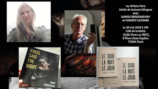 I ) TUESDAY 20th May 2025 IVY WRITERS PARIS, which I had the great luck to co-found with Michelle Noteboom in 2004/2005 is having an evening of bilingual poetry with Margo Berdeshevsky and Vianney Lacombe. At Café de la Marie, 8 place Saint Supplice at 19h.