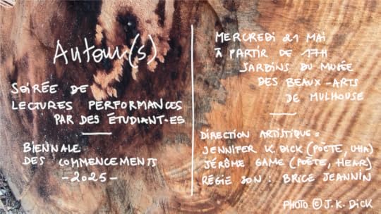 II) Wednesday 21st May 2025 AUTOUR(S) : Soirée de lectures-Performances par des jeunes créateurs dans le cadre de la Biennale des Commencements 2025 à Mulhouse.