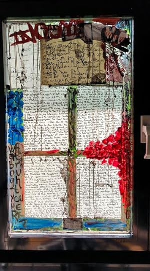 I am thrilled, and humbled, by the invitation to partake in this group art show "" curated by Mayu Kanamori (, then on names to see her works) which opened on 11 Sept 2025 and will be going until 22 Sept 2025 in Canbera, Australia at: Australian National University: Coombs Building Coombs Tea Room Foyer, 9 Fellows Rd Acton, ACT. Here is the image of the window I made a text-paint collage across for Tomashi Inouye: