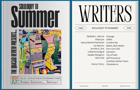 And here is the link to the flip-book in which my poems appear, on page 5. HERE Hope you will enjoy! This is a screen shot of the page on which they appear. I was, yes, surprised by the blue palm trees--a little extra dimensional visit? :) Quite fun. And again, thanks Quasar Review!