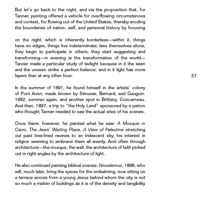 Like an insect, a flower, a leaf, dust in a gust of wind causing us to pause then wander off, free to explore the spirit of something encountered, poetic fragments float through these texts, break away from thought to sense (tactility) and to sensing (knowing, feeling, suspecting an idea to be an accurate rendition) through and beyond—like Tanner’s :