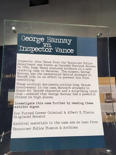 This is the first time any of these documents have been displayed, and there’s some intriguing, material including a letter that Hannay wrote to Vance’s boss in an attempt to discredit him. Aimee has also uncovered Hannay’s connection to Albert Planta, a corrupt senator from Nanaimo.