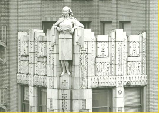 According to newspaper articles, the eleven-foot-high terra cotta nurses, designed by Joseph Francis Watson, weighed several tonnes each and were in rough shape when they came down. The cost to fix them was upwards of $70,000 each.