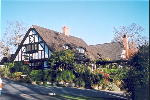 Architect Hubert Savage designed the Tudor Revival house as an English-style tea and dance room in 1939, strategically built on a hilltop between Butchart Gardens and the new Airport.