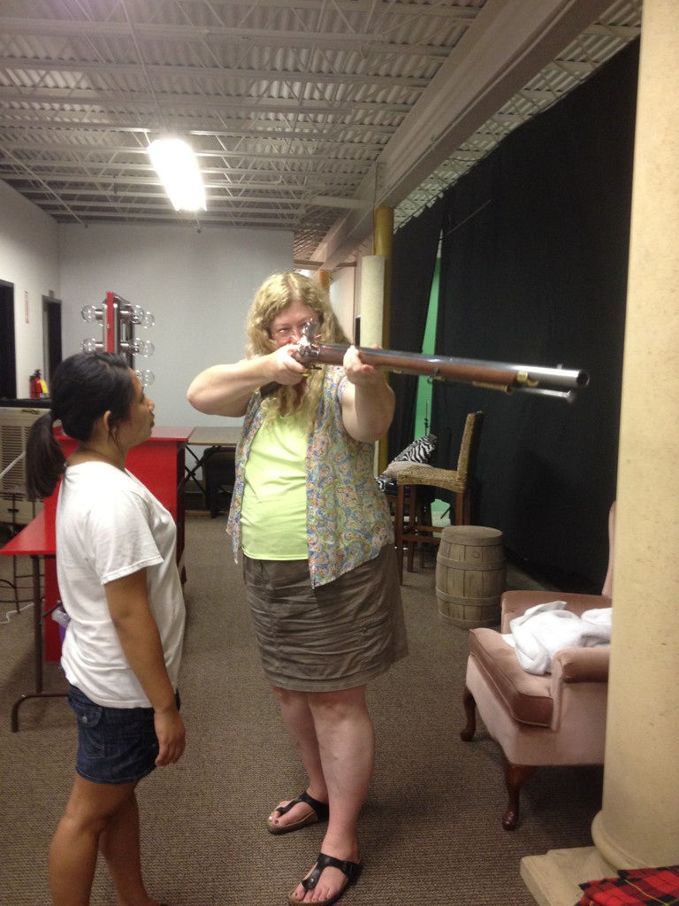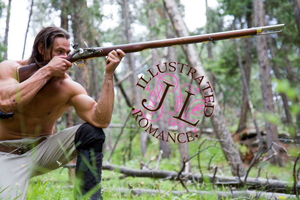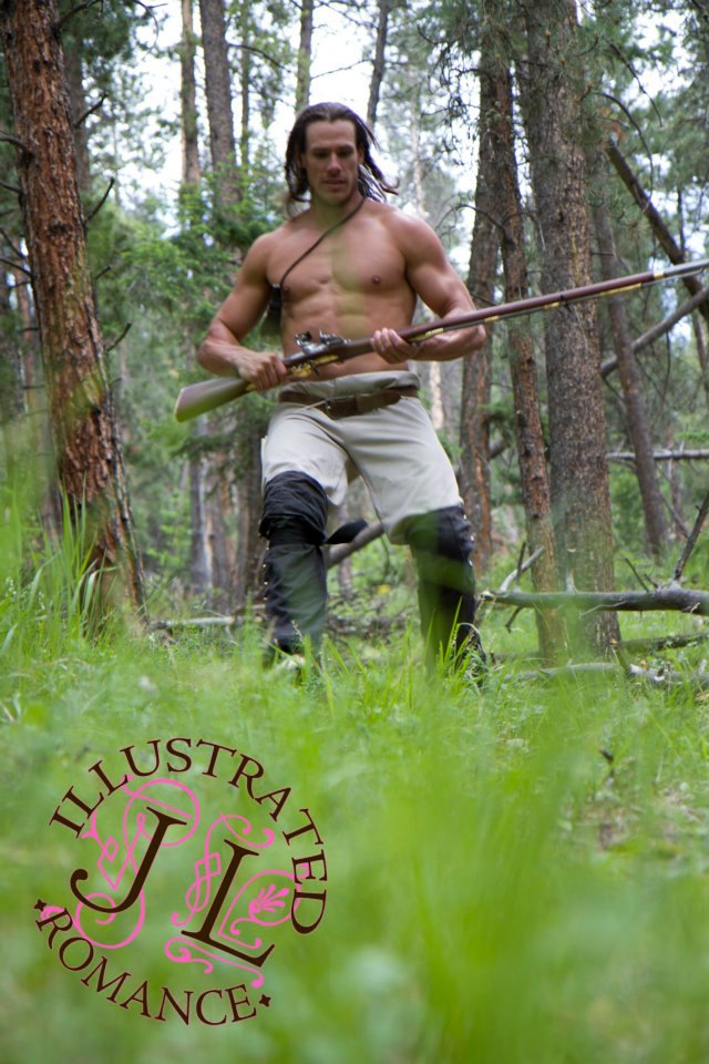 Cora’s folks have a beautiful mountain home with lots of acreage of forest, where we set about the forest part of the shoot. Now, a Colorado forest looks nothing like a forest from upstate New York, but we couldn’t replant the whole thing. We had to make it work. We got out our props, had Karl switch from swim trunks to breeches, and got out Bess — my musket.