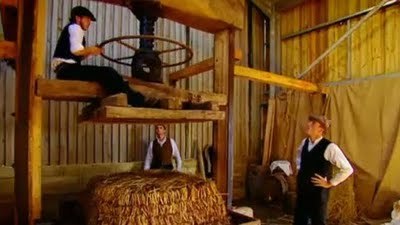 Apparently, prior to this, these three had a program called The Victorian Farm, which is equally fascinating. During the Edwardian period, technological advances included combustion-engine plows, indoor plumbing, gas ranges and so forth. When I'm done watching these episodes, I'm going to dive into The Victorian Farm and see what things were like back then.