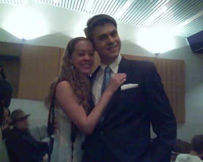 Here's Benjamin on the night of the screening in Park Auditorium with his beautiful girlfriend, Lucy. Alec is sitting in the background, saving seats. He's the one with the fedora.