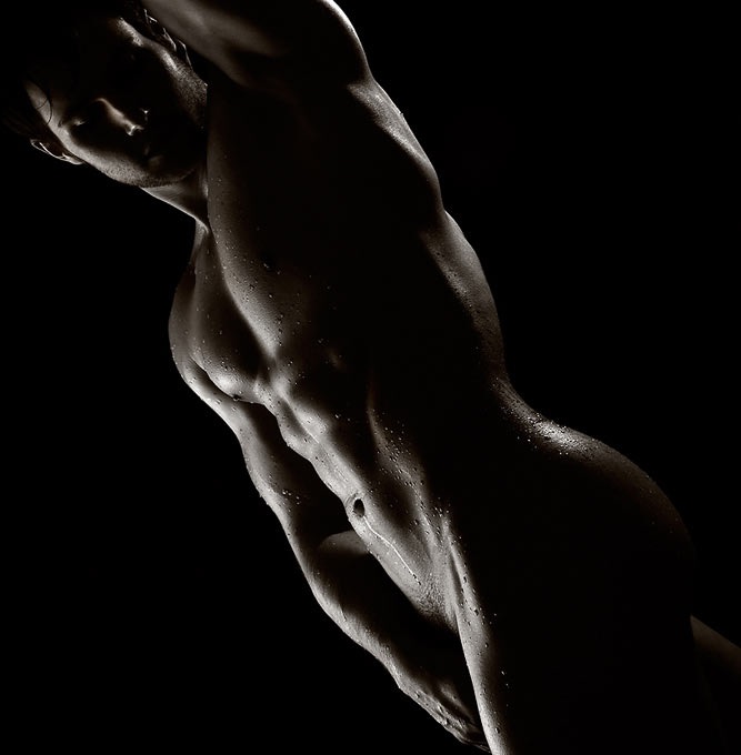The man above drew my gaze with that single prominent drop of water that's trickling down his belly toward paradise. There's something about the way water slides over a man's hard muscles, emphasizing how soft a man's skin can be, even when he's hard as iron beneath.